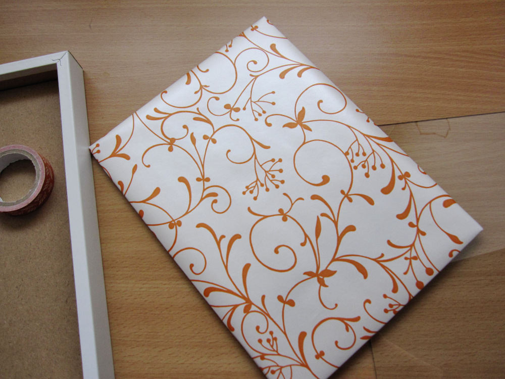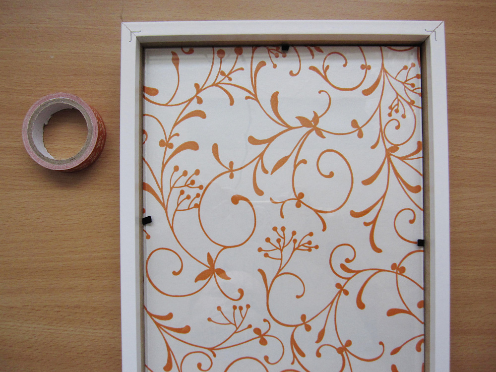 - Ozadje okvirja ovijemo z okrasnim papirjem in ga na zadnji strani prilepimo/pritrdimo s pomočjo lepilnega traka.
