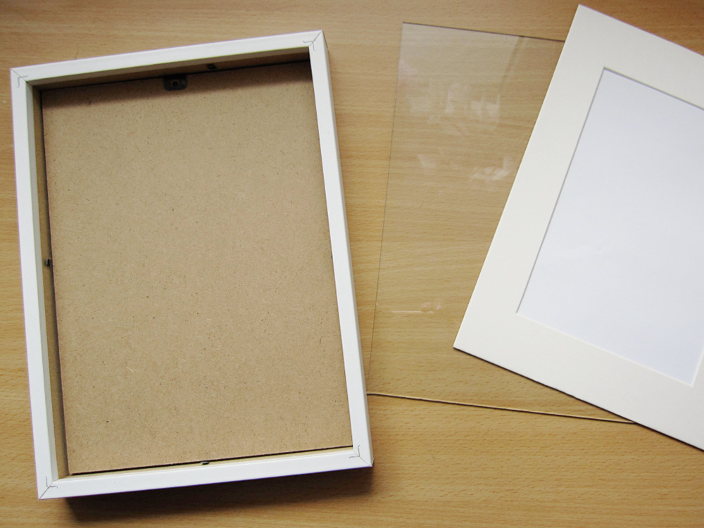 - Okvir za slike razstavimo. Notranji okvir iz kartona lahko shranimo, če ga bomo v bodoče še potrebovali.