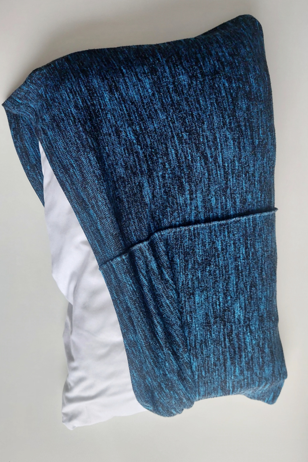 - Izberemo pulover primerne velikosti. Najbolj preprosto to storimo tako, da polnilo oz. blazino vstavimo v spodnji del puloverja in pogledamo, če ta pokrije blazino po višini in širini. Širina se mora popolnoma prilegati, pri višini pa moramo upoštevati še nekaj dodatnih centimetrov za spodnji in zgornji rob.