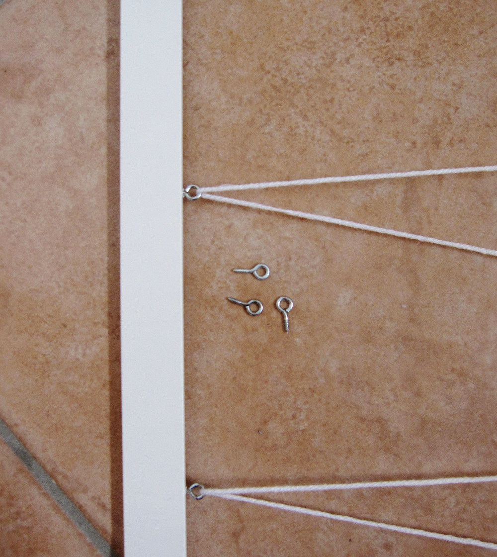 Razstavimo okvir za slike in obdržimo le zunanji del. To pomeni, da odstranimo steklo in zadnjo stran. Z manjšim ročnim vrtalnikom v notranjo stran stranic zvrtamo majhne luknje, v katere nato privijemo t.i. očesne vijake. Skozi izpostavljena očesa dobro napnemo volno ali vrvico. Ko jo napeljemo skozi vsa očesa vijakov, jo privežemo na prvi in zadnji vijak, preostanek pa odrežemo s škarjami. Tako ustvarimo cikcak vzorec za obešanje sporočil in drugih slikovnih predmetov.